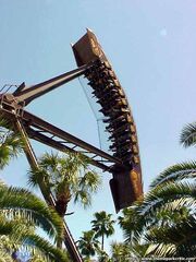 Two of the most well-known Bolliger & Mabillard creations go head-to-head in this match-up! Kumba is a very loopy attraction with seven inversions. It features a vertical loop that wraps around the lift hill, and interlocking corkscrews. Apollo's Chariot takes another approach to thrills. It lifts riders to a height of 170 feet (52 meters) and drops them 210 feet (64 meters). A total of eight camelback hills lift riders out of their seats with "airtime". Although Apollo's Chariot is a fun ride, Kumba packs more a thrilling punch.