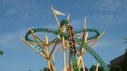 A classic Schwarzkopf looping coaster faces off against a terrain-based looping coaster built by Arrow Dynamics. Although Scorpion has a forceful loop and a clever design, Loch Ness Monster outdoes it with interlocking loops, and a very scenic ride.